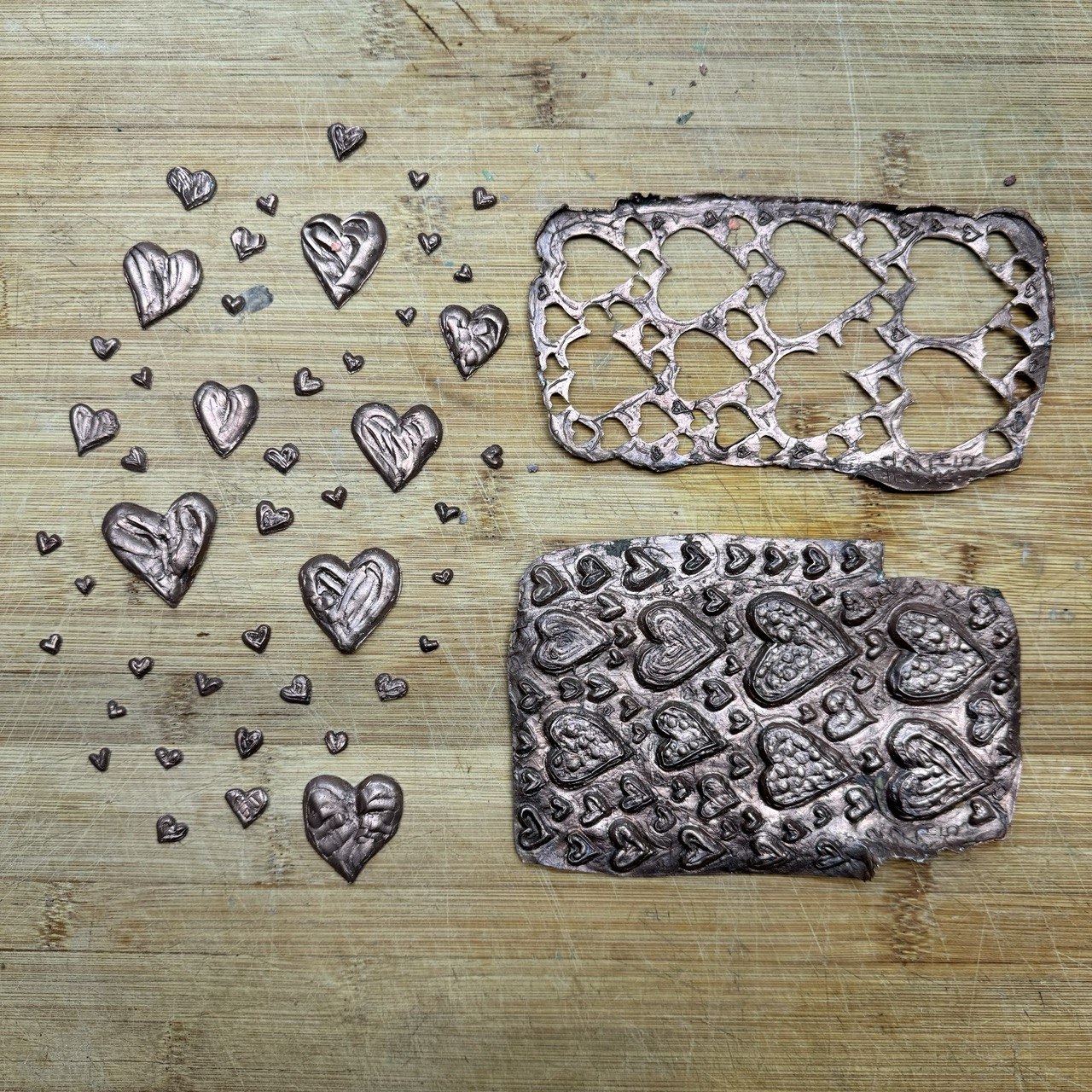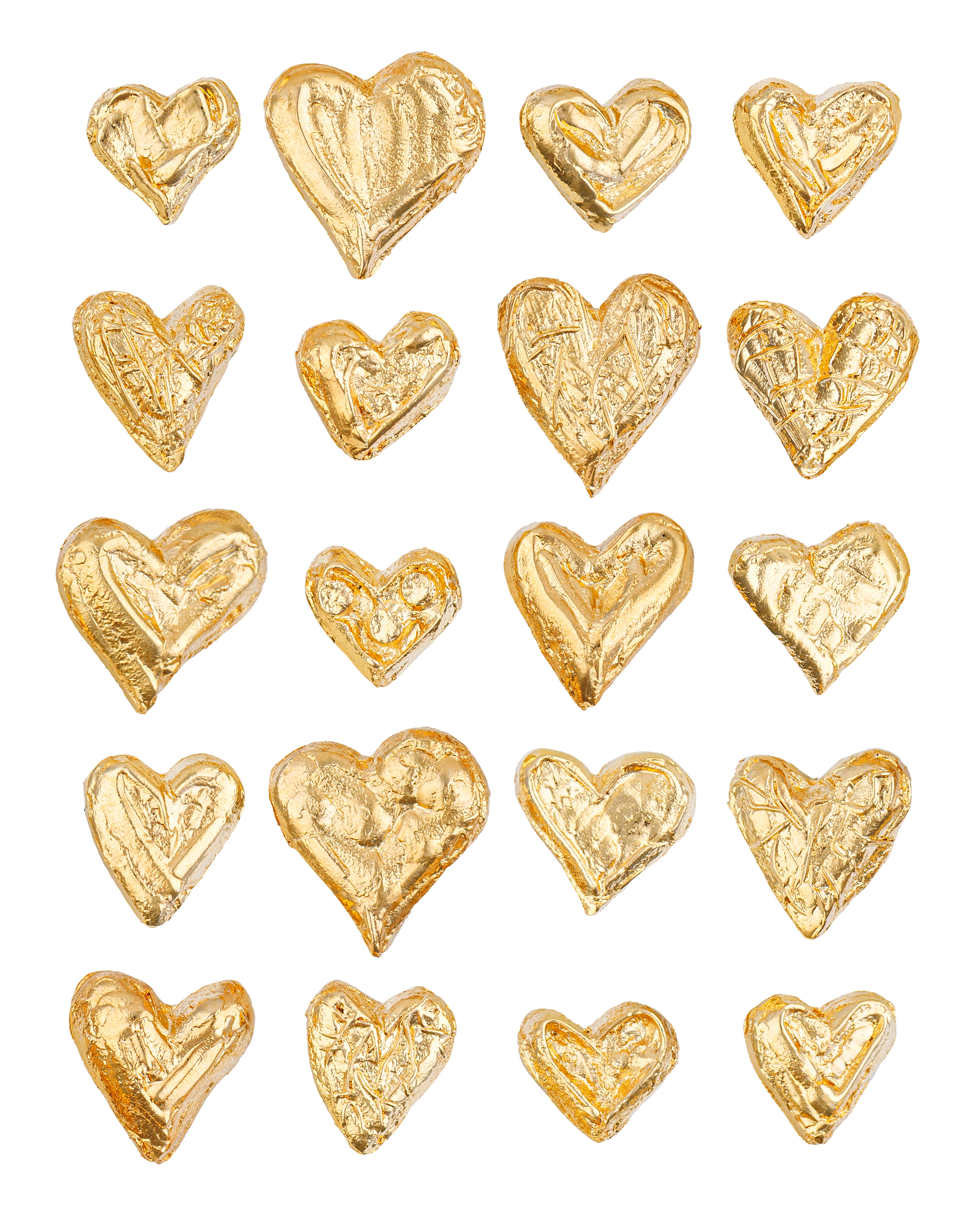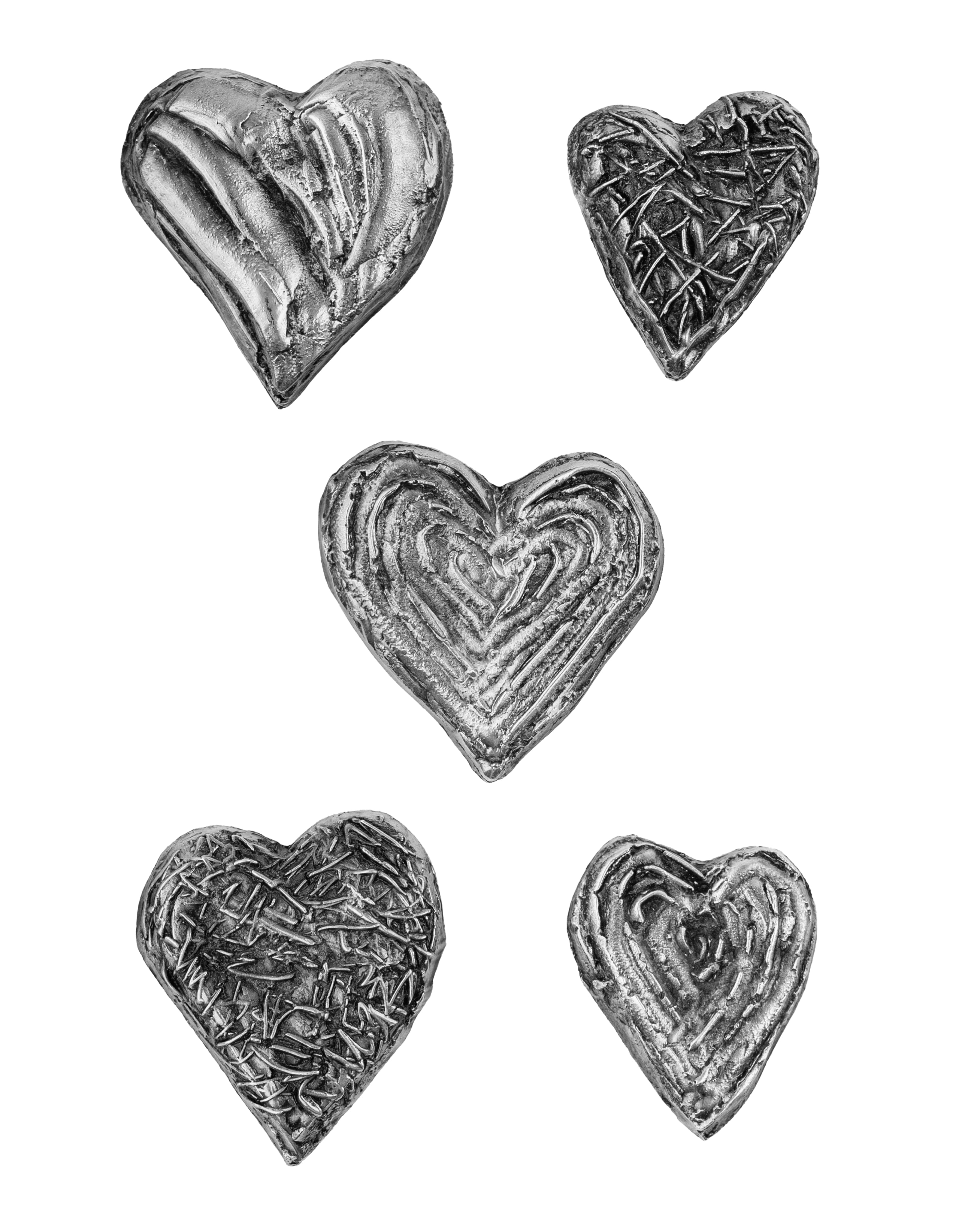 When I returned to my studio, I translated this inspiration into form. I sculpted three series of unique hearts, each with its own texture, shape, and character. From these, I selected 33 pieces that felt the most alive.