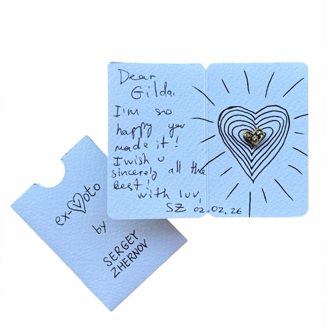 To complete the idea of giving, I also designed a special packaging: an envelope containing a postcard. Each heart is pinned to the card, which can be signed and gifted—transforming the piece into a personal message of gratitude, from one person to another.